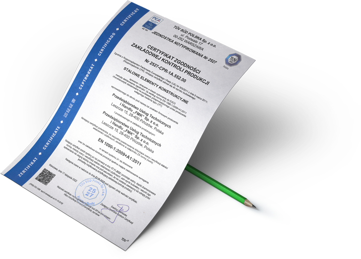FMK Sp. z o.o. posiada Certyfikat Spawalniczy wydany przez